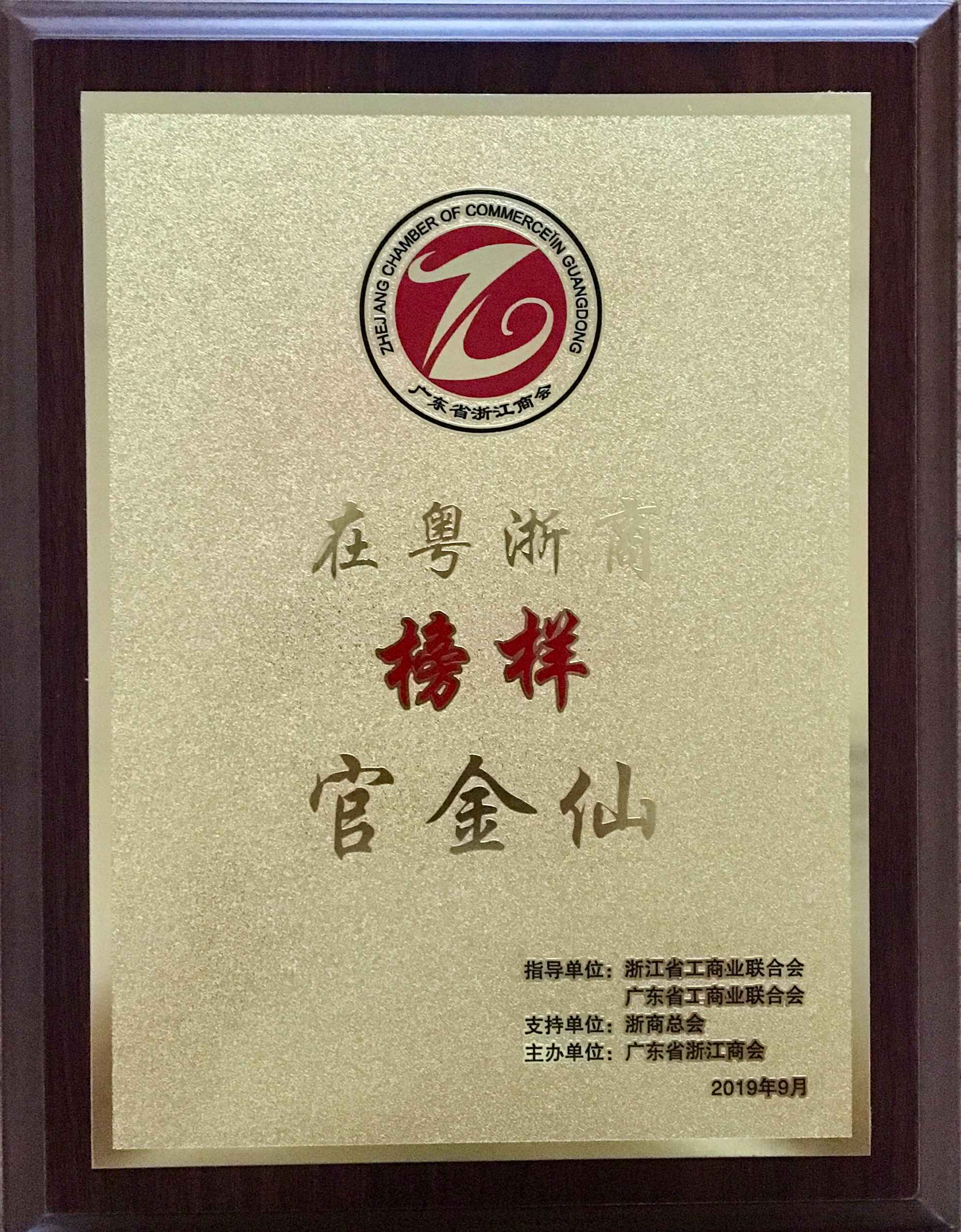 官金仙董事长荣获在粤浙商“榜样”奖